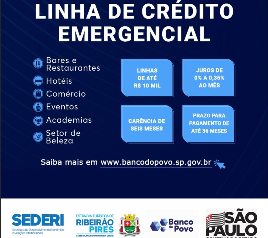 Nesse momento de combate ao coronavírus, o Banco do Povo Paulista, do Governo do Estado, liberou uma linha emergencial com condições especiais. Estão disponíveis linhas de crédito de até R$ 10 mil para capital de giro com taxas de juros de 0% a 0,35% ao mês. Os empréstimos podem ser solicitados em http://www.bancodopovo.sp.gov.br. Na Estância, o Banco do Povo está vinculado à Prefeitura de Ribeirão … Continuar lendo Banco do Povo de Ribeirão Pires disponibiliza linha de crédito para setores impactados pela pandemia