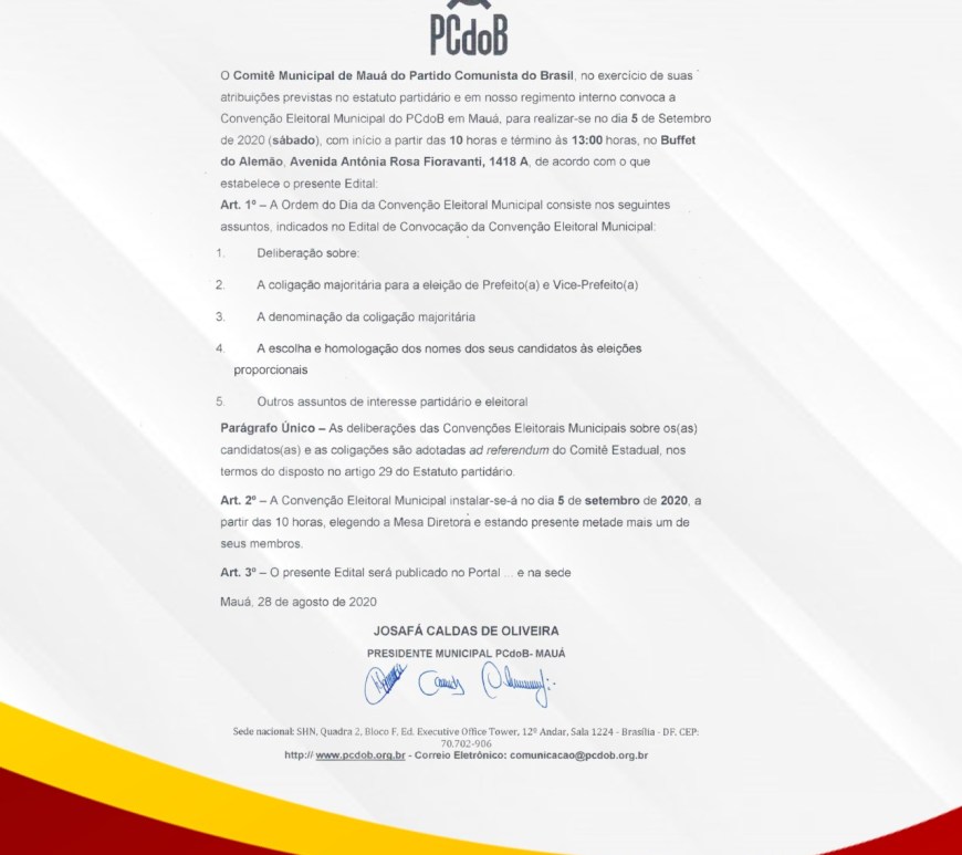 PC do B de Mauá realizará convenção no próximo dia 05 de setembro