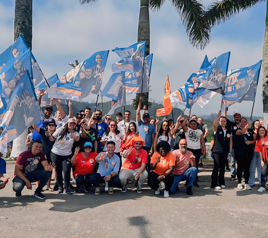 Candidato a vereador Leonardo Alves realiza caminhada com apoiadores em Rio Grande da Serra