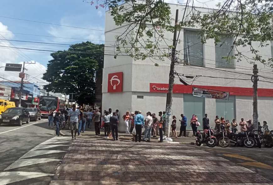Filas e aglomeração nos bancos e lotéricas de Mauá na manhã desta segunda-feira dia 5 de abril