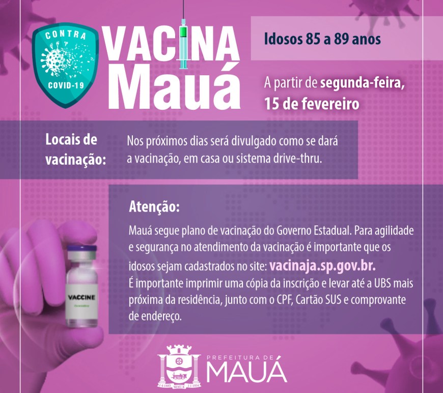 Idosos com idade entre 85 e 89 anos já podem se cadastrar para a vacinação em Mauá