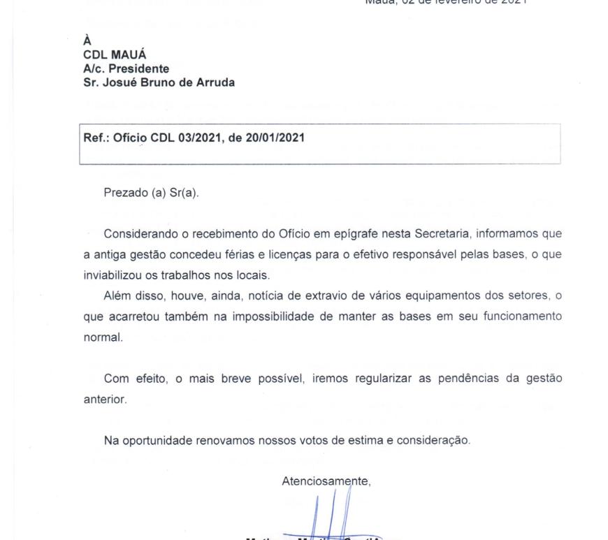 Matheus Martins Sant’Anna secretário afirma ainda que teve notícias de extravio de equipamentos. A CDL (Câmara dos Dirigentes Lojistas) de Mauá, obteve resposta da Secretaria de Segurança Pública de Mauá, o assunto que aflige os comerciantes é ausência de patrulhamento por parte dos Guardas Municipais principalmente nas bases fixas e móveis pela cidade. Segundo o presidente da CDL Josué Arruda os crimes estão acontecendo com … Continuar lendo Em oficio Secretário de Segurança de Mauá afirma que férias de guardas seria o motivo de falta de patrulhamento em bases