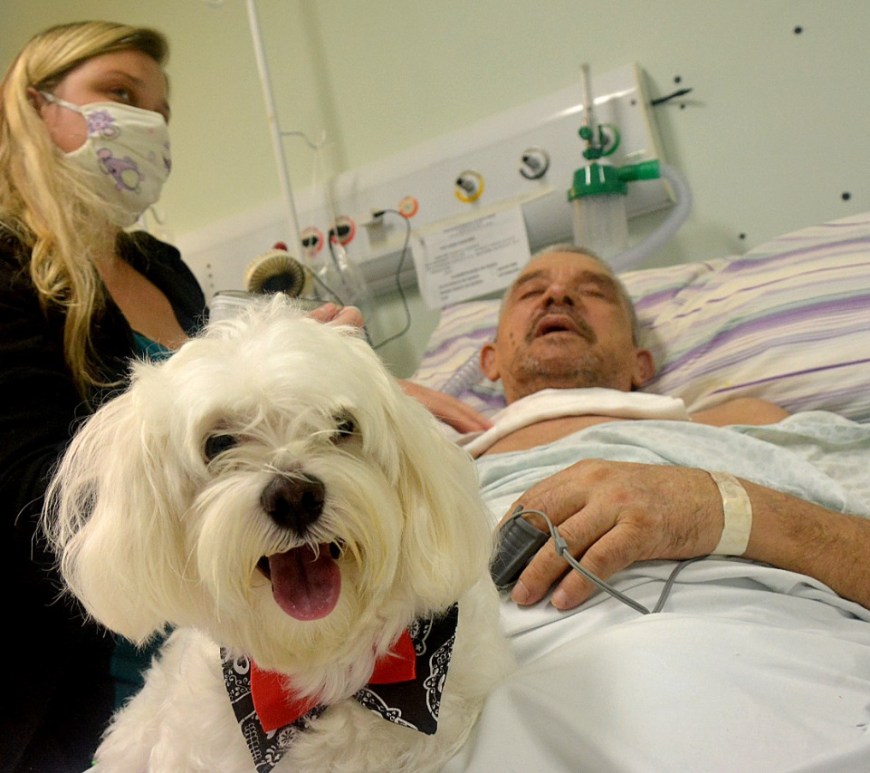 Paciente recebe visita de cachorro de estimação no Centro Hospitalar Municipal de Santo André