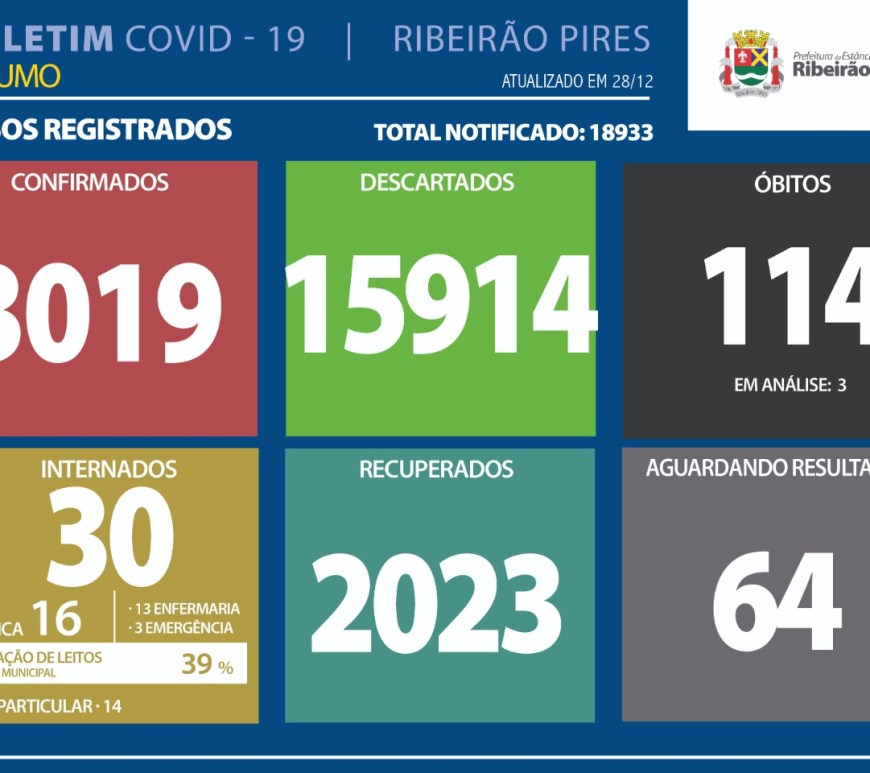 Ribeirão Pires chegou a 114 mortos pela Covid-19 nesta segunda dia 28 de dezembro