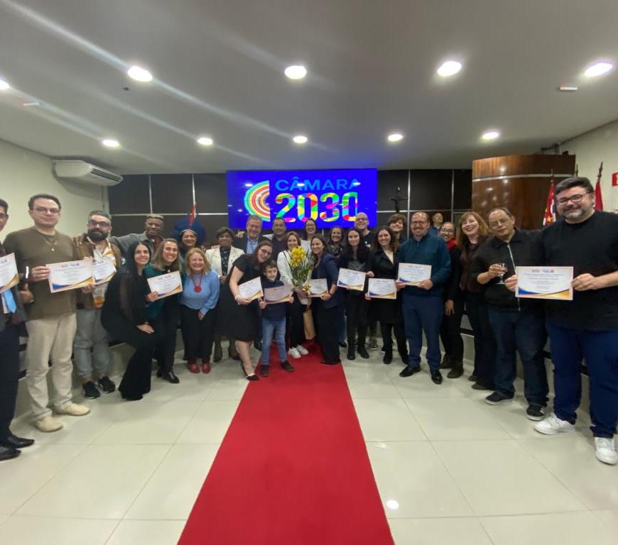 Sessão Solene reuniu principais literatos e celebrou a cultura ribeirão-pirense, em evento realizado no Plenário Roberto Bottacin Moreira, na última semana A Câmara Municipal de Ribeirão Pires homenageou cerca de 30 autores da cidade, durante a Sessão Solene em celebração ao Dia Municipal do Escritor, instituído pela lei municipal nº 6841/2023. Cerca de 100 pessoas, entre convidados, familiares e autoridades municipais, participaram do evento, realizado … Continuar lendo Ribeirão Pires homenageia autores da cidade em celebração ao Dia Municipal do Escritor