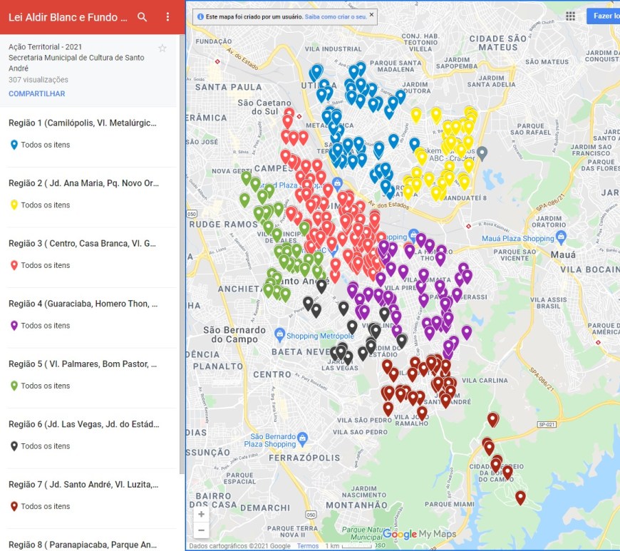 Ações realizadas via editais Lei Aldir Blanc e Fundo de Cultura estão geolocalizadas no território da cidade; proposta é estimular criação de redes Um trabalho inédito na cidade foi elaborado pela Secretaria de Cultura de Santo André para identificar onde estão sendo realizadas as ações financiadas pelos editais do Fundo Municipal de Cultura e da Lei Aldir Blanc. Os cerca de 400 projetos foram inseridos … Continuar lendo Santo André mapeia projetos culturais utilizando o Google Maps