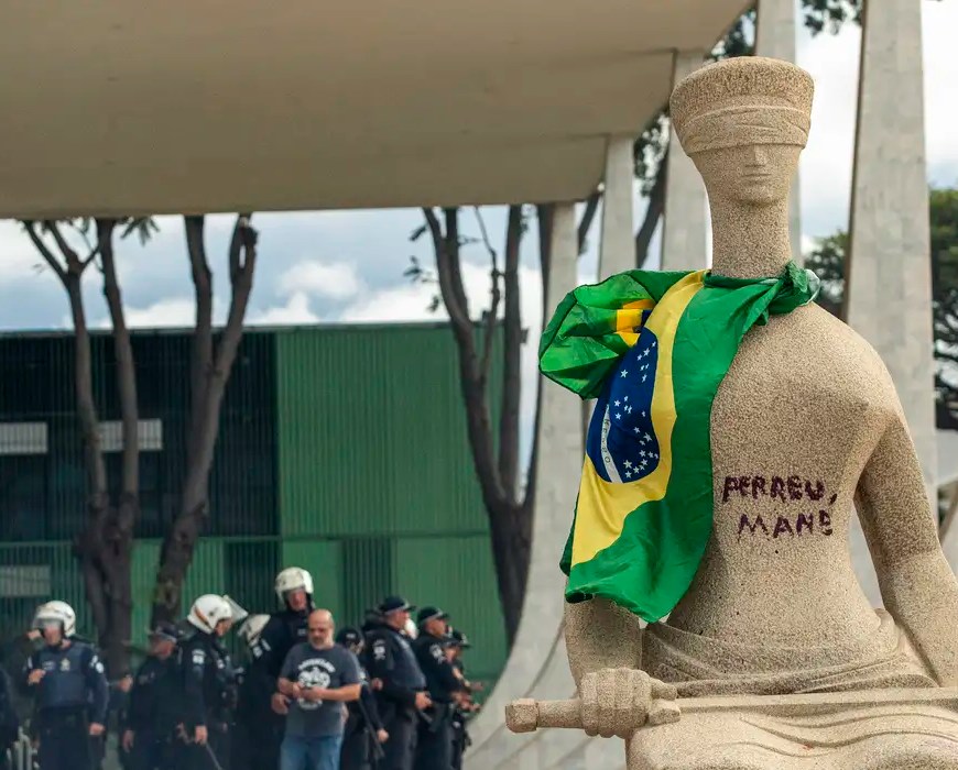Débora foi condenada por cinco crimes, inclusive golpe de estado A Primeira Turma do Supremo Tribunal Federal (STF) condenou nesta sexta-feira (25) a 14 anos de prisão a cabelereira Débora Rodrigues dos Santos, acusada de participar dos atos golpistas de 8 de janeiro de 2023 e de pichar a frase “Perdeu, mané” na estátua A Justiça, localizada em frente ao edifício-sede da Corte. A condenação a … Continuar lendo STF condena mulher que pichou estátua a 14 anos de prisão